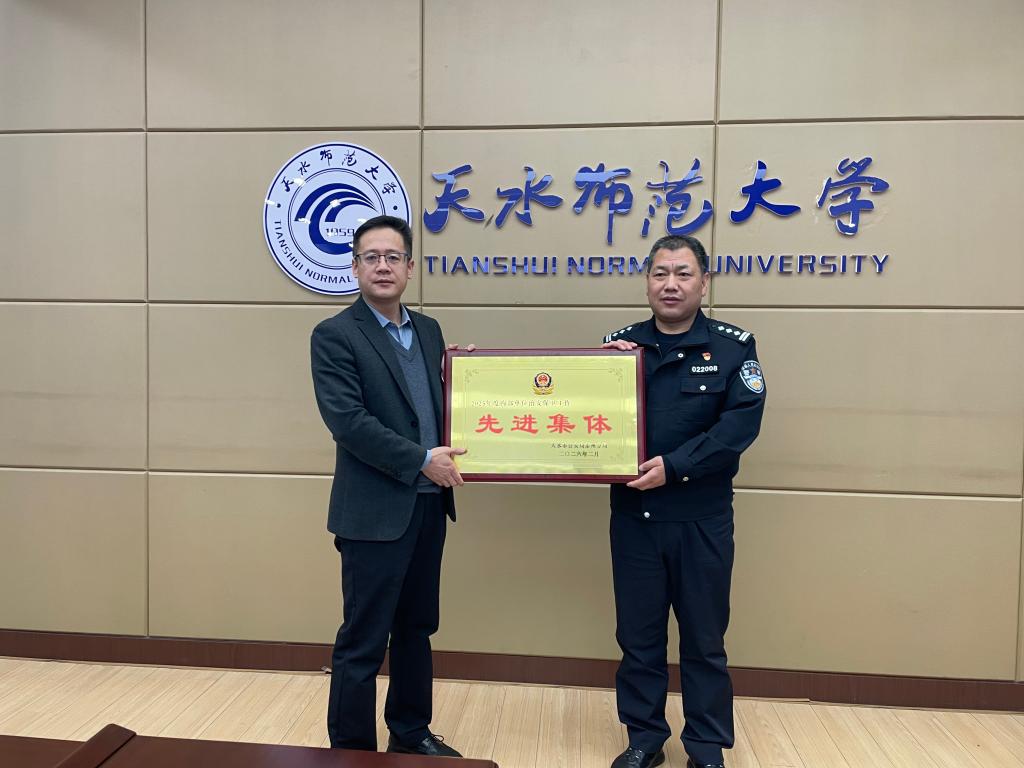根据2025年初各单位签订的《内部单位安全保卫工作目标管理责任书》,天水市公安局秦州分局对全区54个单位治安保卫工作开展了全面评估考核。经严格评审,我校凭借扎实的工作举措、突出的工作成效,荣获“2025年度内保单位安全保卫工作先进集体”称号。